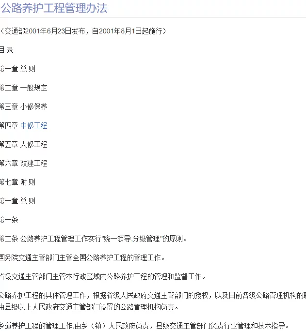 第二条 本办法所规定的公路养护工程是指在一段时间内集中实施并按照项目进行管理的公路养护作业,不包括日常养护和公路改扩建工作来自。