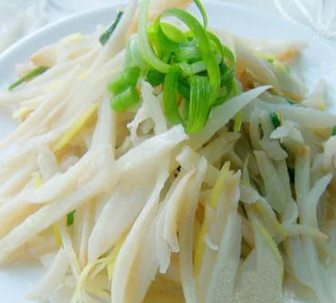 2.把藕刷洗净,擦成藕丝,再将藕丝放入薄荷汁内,泡置10-15分钟,即成。