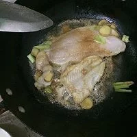 2、坐锅点火倒油,油温三成热时关火下入鱼丝,滑炒变色出锅,锅中留底油,下入酱瓜丝、酱姜丝煸出香味,烹入黄酒,冲少许清汤,勾薄芡,放入鱼丝翻炒均匀,出锅放在焯熟的油菜上即可。
