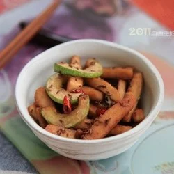 白豆干、西葫芦、植物油、盐、鸡精、孜然、生抽、小干辣椒.