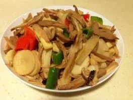 (3)烧锅倒史绝厚振肉联油烧热,下入茭白和笋干一连持养花菜翻炒一下。
