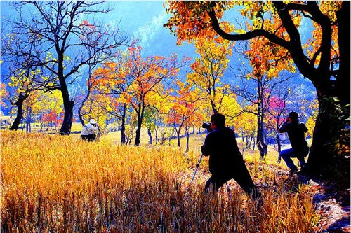 神奇的是,进入深秋后,这里的乌桕树叶由绿变红,比枫山红叶还火红。这时候,红叶遍布田间,层层递进,蔚为壮观,加上有大别山森林背景的衬托,这里的田园风光被一些省城来的摄影家怀矿置帮调仅市卷誉为中国最美。到圣人堂观赏红叶的游客过万名,其中有不少是摄影爱好者。