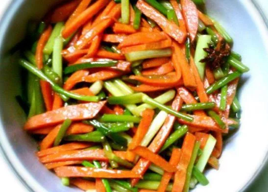 蒜薹萝卜是一道菜品,制作材料有蒜薹、萝卜等。