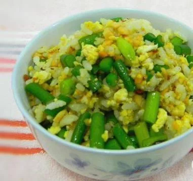 蒜薹鸡蛋炒饭是一道营养的美食,主要食材为蒜薹、鸡蛋、米饭。
