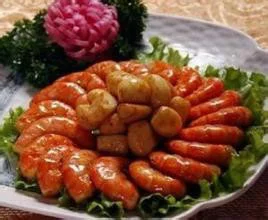 将虾切成段(大虾切成3段,中虾切成2段)360百科。 2.用茄汁、喼汁、麻油、精盐、味精、白糖调稀成芡汁(约100克)。 3.旺火烧热炒锅,下油烧至微沸,放入虾段炸约1分钟,用笊篱捞起。 4.余油倒出,炒锅放回炉上,下虾段煎两面至熟,徐徐加入芡汁,至汁干时,淋油15克炒匀,在碟中砌成山形即可 。