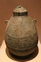 侯母壶西周中期,器呈弹头状,小口直领,圈足,两侧有四系,上两系作兽首衔环形。壶身纹饰分为四区,从上至下,依次为夔纹、三角纹、象鼻纹、三角纹,圈足饰垂鳞纹,盖作蟠螭形,盖沿两侧有系,盖沿和壶口对铭各一圈共15字:"侯母乍侯父戎壶,用征行,用求福无疆。"器形完整,制作精致。