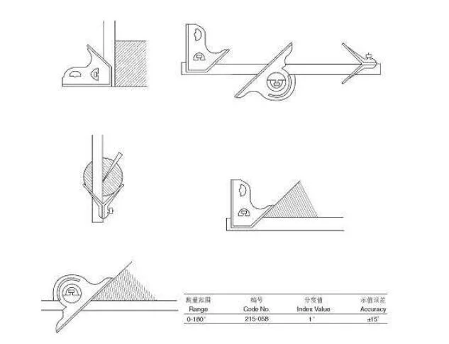 组合式角度尺是一种用于机械加工、木模加工中角度、长度、高度测影送万量及中心定位的常用计量器具。