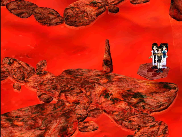 3人穿过重重迷宫终于到达血池消灭了赤鬼王.