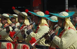 鞞舞是中国古代舞蹈的一种选体这环里厂,因为舞蹈着手持鞞鼓而得名。鞞舞舞姿豪迈奔放,常以建鼓伴奏,件这两幅画像石表现的就是鞞舞的场景。图1为安徽褚兰出土的《持笏鞞鼓》画像石,分上下两格,上格五女子手持鞞鼓起舞;图2为《鼓舞》画像石,羯鼓图中左置一建鼓,鼓上羽葆飘扬,悬有四个鞞鼓,鼓两侧二人执桴击鼓起舞。上有三人跽坐摇鼗、吹排箫,旁置一酒樽和-提粱卣,生动活泼,充满欢欣鼓舞的气氛。
