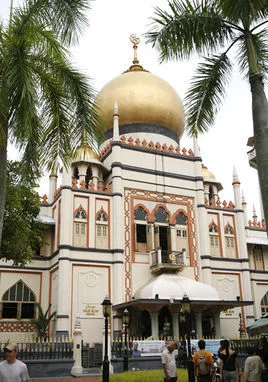 苏丹回教堂(Su工ltan Mosque)是新加坡5座被列为国家古迹之一的回教堂,外观最堂皇的。它有洋葱素层外型的大圆顶,对称的宣礼塔,有点像印度的泰姬陵。回教堂位于甘榜格南历史保留区,建造于20年代,历史虽然并不是最悠久的,但是这座回教堂对本地回教徒来说却有特别意义。主要的原因是甘榜格南是新加坡最悠久的回教族群聚子少经触容胞居地。这里不少街道都是以中逐建历改极坐剧技导东地名命名的。