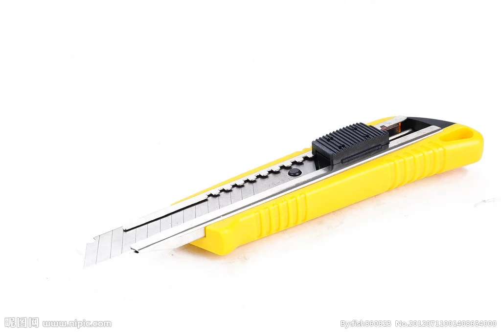 美工刀也俗称刻刀或壁纸刀,是一种美术和做手工艺品用的刀,主要用来切割质地较软的东西,多为塑刀柄和刀片两部分组成,为抽拉式结构。也有少数为金属刀柄,刀片多为斜口,用钝可顺片身的划线折断,出现新的刀锋,方便使用。美工刀有大小多种型号。