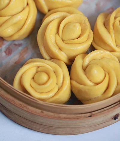 南瓜黄玫瑰花馒头是一种面点,主要食材为面粉、南瓜泥、酵母。做法为将面粉、南瓜景泥、酵母等混匀活成面,待其自然发酵来自后,揉搓、分为若干小面团,每个小面团均加工成玫瑰花形,再上笼蒸熟即可。因成品为黄色,形状似玫瑰花而得名。