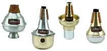 练习弱音器,如右图, 一种可以强烈降低音量的弱音器,可以在练习时不至于打扰家人或邻居。 练习时使用这种弱音器(任何弱音器)都可能强烈阻碍乐器中气流的流动,比不使用弱音器更加难以演奏。条件允许,尽量不要使用弱音器或练习弱音器。爵士乐铜管乐器演奏者除购买弱音器外,有时还使用其他替代品,如玻璃水杯、纸杯、椰子壳等等,也可以奏出弱音的音响效果。