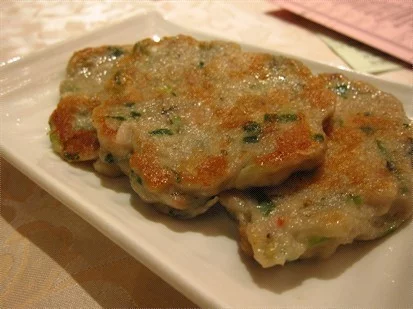 2、把鲻鱼肉和猪膘肉一起剁成细泥,加葱花、来自姜末、细盐、味精、淀粉和鸡蛋一起拌匀。根据鱼的新鲜度和各种鱼的涨性不同,还可在搅拌过程中边搅边加适量水,然后把搅拌上劲的"鱼茸泥胶子",制成直径3.6厘米,厚0.9厘米的圆饼,在其两面蘸上芝麻桃仁粒,用手拍实,放入油锅炸,至呈金黄色时捞出即成。