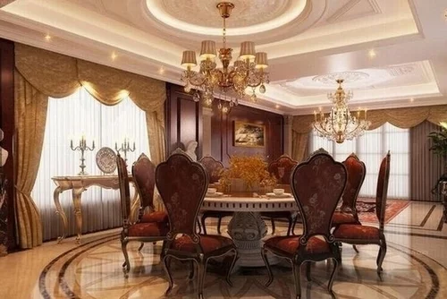 新古典主义的室内设计去芜存菁,保留了路易十四风格的线条,去除了线条上过多的繁杂装饰;保留了细节,却又不过多的细节堆杂以至于失去重点;保留了镶花刻金,却又不是满眼金晃晃的让人眼拙。这种保留了材质、色彩、风格,摒弃了过于复杂的线条、装饰、肌理,却没有丢失性格,仍然可以强烈感受到传统的历史痕迹和浑厚的文化底蕴,便是完美折中主义的新古典主义风格。