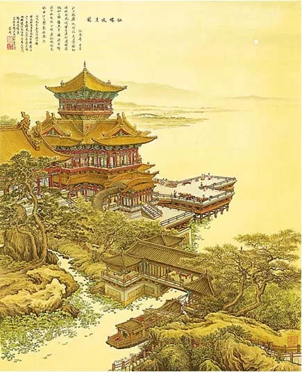 楼阁台榭,汉语成语,拼音是lóu gé tái xiè,意思是泛指高大研华丽的建筑群。出自《来自西京杂志》。