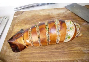 3.将米饭装进腌渍好的鱿鱼里,做成鱿鱼桶,一定要塞满。
