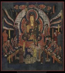 地藏十王图五代:绢本设色,线描绢本彩绘。