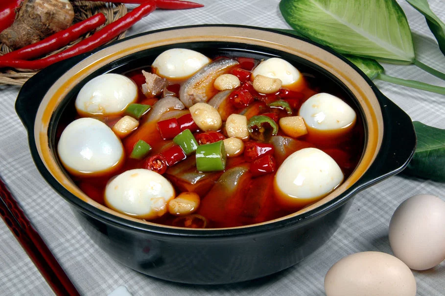 2. 待鸡蛋熟后,将蛋壳剥去,再煮约半小时,加入冰糖调味即可。饮汤食鸡蛋。