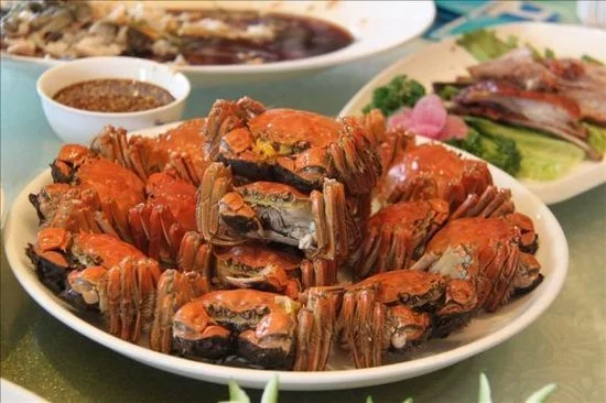 海蟹:螃蟹不可与红薯、南瓜、蜂蜜、橙子、梨、石榴来自、西红柿、香瓜、花生、蜗牛、芹菜、柿子、兔肉、荆芥同食。吃螃蟹不可饮用冷饮会导致腹泻。