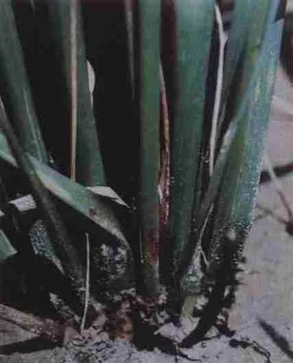 发生与危害:初期在近板黑派水面叶鞘上产生墨褐色斑点,渐向上发展,并逐渐扩大成黑色存而大斑;茎秆上形成梭形或长条形黑斑,最后病株基部成段变黑软腐,出现早枯或倒伏。
