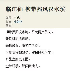 转载请注明出处安可林文章网 » 临江仙·柳带摇风汉水滨