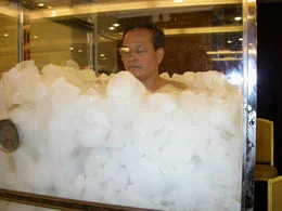 360百科 在纪念吉尼斯世界纪录诞生50周年之际,英国《每日镜报》曾评选出50年来最奇怪的50项纪录,冰耐力项目之一"全身与冰接触最长时间的人"名列第五;而在前十名的项目中,历史上从未出现过中国人的身来影。