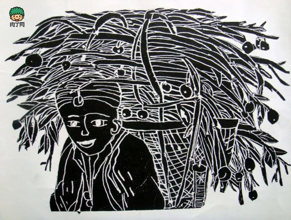 2 巧妙利用"留黑"手法,对刻画的形体作特殊处理,获得版画特有的艺术效果。