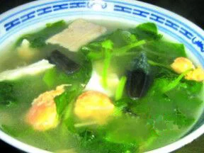 苋菜豆腐滚双蛋是由苋菜,豆腐,皮蛋,咸二蛋等制作而成的口味清淡的汤品。