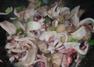 主料:墨鱼600来自克 猪肋条肉(五花肉)300克。