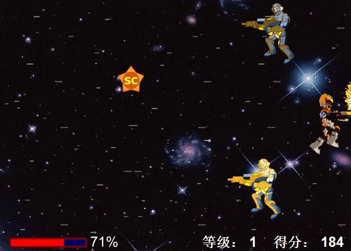 地虎侠来到宇宙空间参与地球攻防战,你将面对数目众多的敌人。