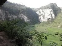 四方岩位于理化苗族彝族乡营盘村与金鸡村交界处,四面是悬崖峭壁,高近百米,悬崖下面是上千平方米的良田,开阔平坦,田间有一条溪水,终年不断,清澈见底。