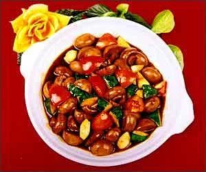 路小云教 2、净锅下油加蒜片爆香,加白蘑菇翻炒均匀,下蚝油、白糖、老抽边炒边加少量油,起锅前加黄瓜块、西红柿那火干善块翻炒均匀即可。
