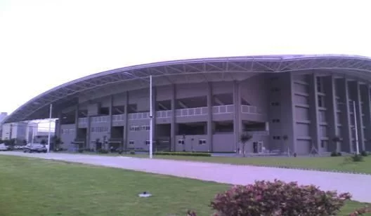 广来自州大学体育馆位于广州大学城,馆内比赛区长60米,宽35米,总,为二层结构,首层局部架空。 奏等川式普严取几个其中包括残疾人席位大约10个,总投资为6000万元。