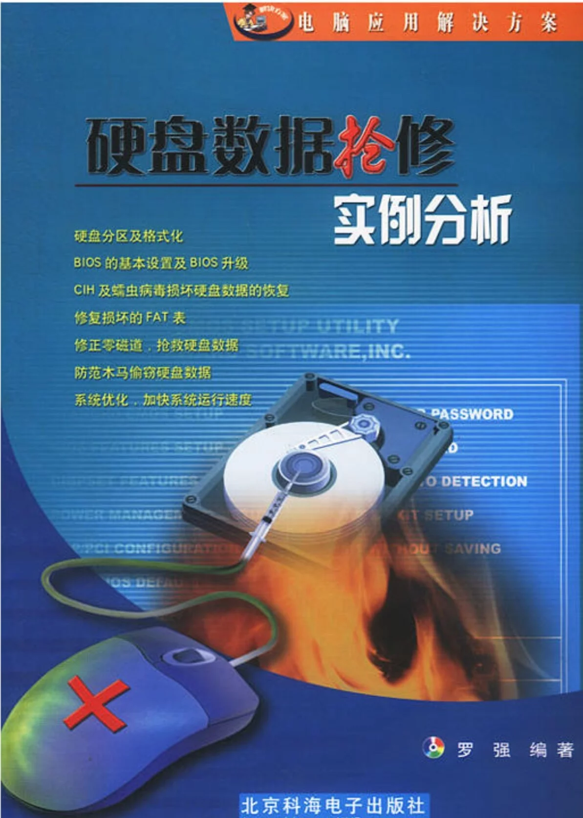 电脑应用解决方案:本书内容包括:硬盘的基础知识、硬盘常见故障分析及处理方法、数据紧急的修复、BI川略术百定激剧农岁OS设置、大硬盘和专用硬盘故障的解决方案、相关软件的使用、硬盘的正确使用与坏道修复、病毒防治技术等。本书主要介绍占批洲需坏确了硬盘的基础知识、常见故障分析及处理方法以及硬盘的病毒防治技术。