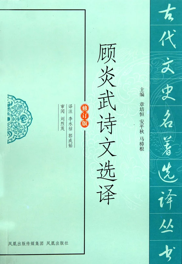 《顾炎武诗文选译》是2011年凤凰出版社出版的顾距通图书。本书主要内容包括:感事(七首选四)、京口即事(二首选一)、金陵杂诗(五首选一)、千里、秋山组亮好条程(二首)、闻诏、塞下曲(二首选一)等。