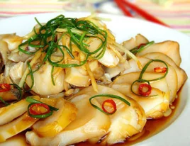 1. 将海螺去壳,去掉杂液,片成薄片;