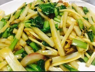 青菜鸡蛋炒年糕是一款家常菜品,制作原料主要有青菜、鸡蛋、年糕等。