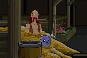 你要开动自己的脑筋来杀死恶魔,游戏攻略:先对话,然后点击叉子,再点击木桶,然后再点击木桶,点击叉子,点击老鼠夹,点击猪吃食的地方来自,点击水桶,然后要看你自己努力了。