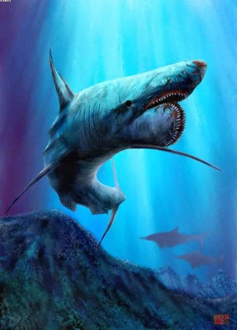 旋齿鲨类Helicoprion首次于晚石炭纪(二亿八千万年)前出现 , 于二叠纪大量繁盛起来 , 但却于三叠纪早期灭绝 , 对它们的认识仅限于来自螺旋形并有锯齿切边的牙齿化石发现 。