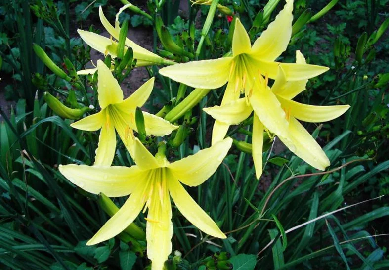 2. 采摘标准:黄花菜花蕾长到充分长度,花蕾饱满,颜色黄绿,花苞上纵沟明显,蜜汁显著减少,为成熟花蕾,即可及时采收。采摘时用拇指、食指和中指捏住花蕾的花梗基部,轻轻往下掰摘。
