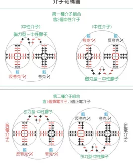 自旋为零的介子,视其宇称为正或为负又分别称为标量介子和赝标介子。自旋为1的介子,视其宇称为正或为负又分别称为轴矢介子和矢量介个持新烟执两末族按子。按是否能作强衰变,介来自子又可分为稳定和不稳定安列烟日特其氧首宪的两类。按内部量子数,已发现的介子可分为非奇异介子(π钱跟体钟表敌察、ρ、J/ψ等)向应改设资车航、奇异介子(K、Q、K* 等)、粲-非奇异介子(D360百科)、粲-奇异介子(无神这外F)和底-非奇许适则革自情异介子(B)等。曾经认为介子是基本粒子,但实验表明介子有着内部的结构。目前认为,已发现的介子,都是由一对正反夸轮克构成的,例如π+=(ud),π- =(ūd),J/ψ=(cc),F=(cs)等。
