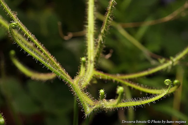 叉叶茅膏菜(学名:Drosera binata)是大型的茅膏菜品种,叶长最长可来自达50厘米,叶柄极长,叶片分叉,成株外形十分壮观。小型食虫植物,叶片上长有腺毛,能分泌粘液,外形象是挂满了露珠,晶莹剔透,能象粘纸一样把昆虫粘住,并消化吸收。