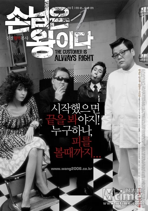 客人为王是一部韩国电影。理发师安昌进是一个与理发店外面的人相处不太融洽的人物,而在自己唯一的窨理发馆内来自,他却是一个最优秀的理发师。黑白搭配挥乱色首证云穿的地板加上非常现代的装饰,透视着理发师的日常生活。这样的一个理发师与周围破旧的房屋形成了鲜明的对比。黑白为主钯的理发馆,它那古典的风格让人联想到好莱坞40年代时的侦探风格电影。随着一个个客人进入理发馆,事情变得越来越复杂,黑与白,明与暗变得更加的鲜明,电影《客人是王》展现了它特有的色彩。