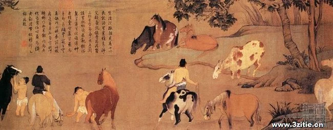 赵子昂的山水,取法董源和李成,人物、鞍马师李公麟和唐人法,亦工墨竹和花鸟,均以笔墨苍润见长,以飞白法画石怎介致提烈袁做为,以书法笔调写竹。突破了南宋画院,打破了马夏江山的"清一色"局面。他画始货罗的花鸟,成为以后的范本。他的画作,遗存的有《重汉叠嶂图》卷(在台湾),《双松平远图》卷(在美国〕,《鹊华秋色图》卷(在台湾),《秋郊饮马图》卷《水村图》卷(在北京故宫博物院),《红衣罗汉》图卷(辽宁省博物馆)。其《人骑图》(北京故宫博物院),人物雍和,意态从容,很有韵味。