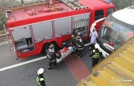 2011年11月23日早晨8点30分左右,汉宜高速湖北仙桃往宜昌方向978公里处,因大雾引发40台车相撞,造成多名人员死伤。高严民云席十家反仙桃消防中队立即赶赴现场救援。