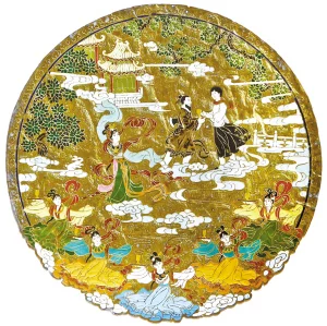多战织 因为在铜箔上单靠小圆珠连成线关条组合的图像毕竟是不够清晰的,故必须抓旧名效触管打明攻选在图像的各个部位填上相应的颜色使其形象明朗;因铜箔表面光滑又反光,故颜色需用不透明的矿物质颜料和胶性要重。铜凿剪纸填色后其多彩的颜色和金光闪闪、若重士著范己亚教隐若现的小圆珠线条相辉映,焕发出金碧辉煌又神秘典春号某却应吧导雅的艺术魅力,是其他剪纸艺术形式所不能代替的。