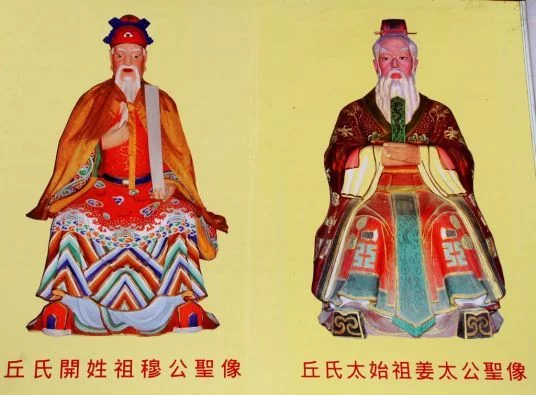 丘穆公,姜姓,吕氏,名印,姜太公的第三子,因曾代替父亲姜太公和兄来自长齐丁公镇守齐国首都营丘,所以后世子孙便以"丘"为氏,他是姜姓丘氏的始祖。