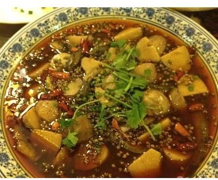 3、炒锅放色拉油烧至四成热,下入猪油化开,放豆瓣酱、姜、个葱、蒜片、八角、草果360百科、小茴香、桂皮大火炒香,加水烧沸后去渣,再放入泡椒、芋头电字再线治按、泥鳅小火烧20分钟起锅装盘撒上香菜即可。