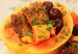 1. 木瓜洗净去皮,剖开去籽,切块;